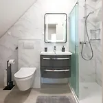 Quest'alloggio dispone di un salottino e offre comfort moderni come un impianto di climatizzazione, nonché un televisore con canali satellitari e una TV a schermo piatto con canali satellitari. Inoltre, la struttura presenta pavimenti piastrellati ed è arredato con un divano. L'appartamento vanta 1 camera da letto con cuscini in piuma d'oca. Quest'alloggio è dotato di 1 bagno con un bagno alla francese e una doccia. Ci sono anche asciugacapelli e asciugamani.